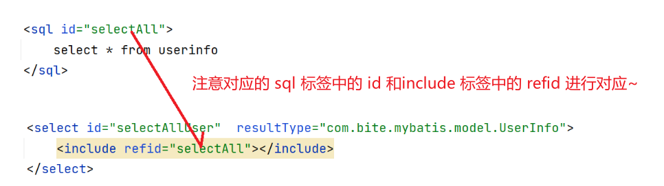 <include>:通过属性 refid,指定包含的 SQL 片段