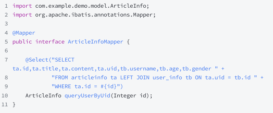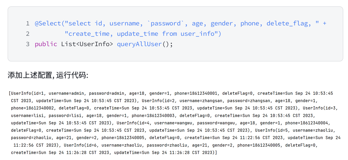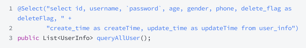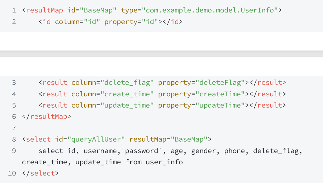 resultType:表示返回的数据类型,也就是我们最初在 model 包中定义的实体类~