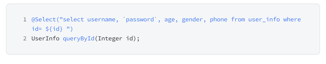 ${ } 会直接字符替换,一起对 SQL 语句进行编译,如果参数为字符串,需要加上引号~