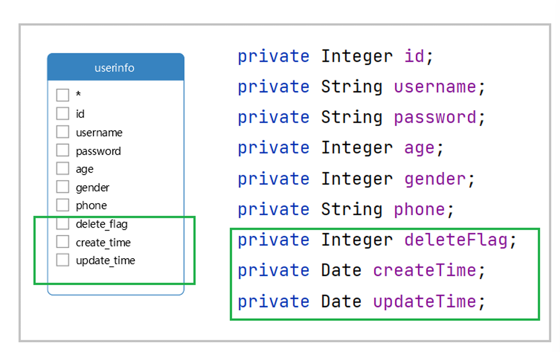 补充:Java 属性,数据库字 与 Java 代码对应