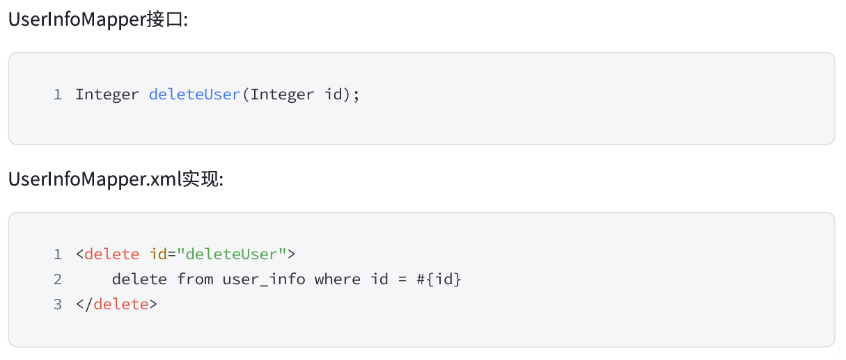 id:是和 Interface 中定义的方法名称一样的,表示对接口的具体方法实现。