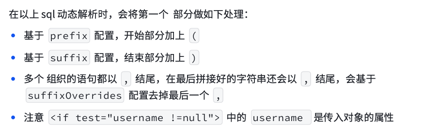 suffixOverrides:表示整个语句块要去除的后缀,