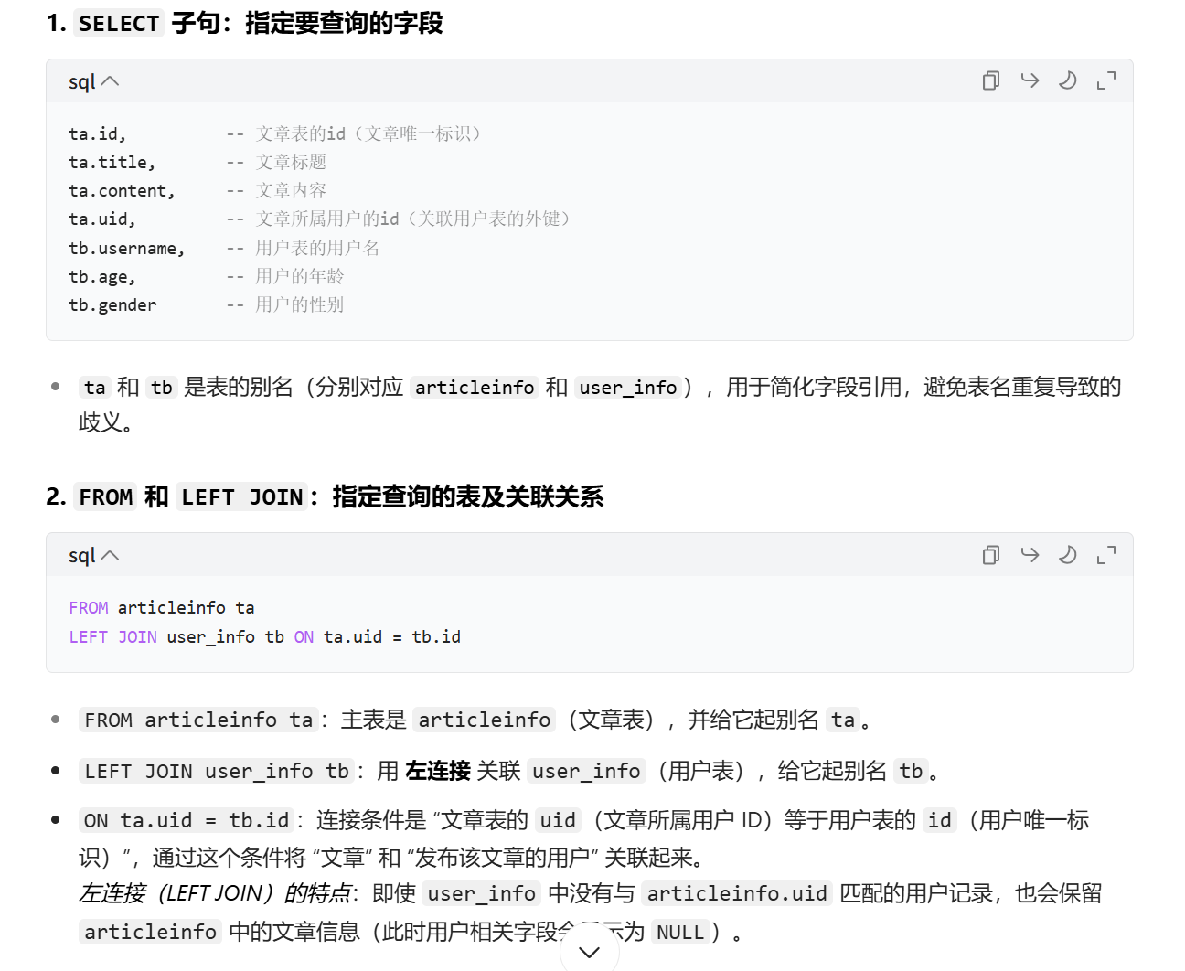 对 sql 语句的解释: