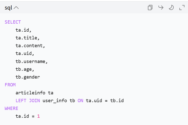 INSERT INTO articleinfo ( title, content, uid ) VALUES ( 'Java', 'Java正文', 1 );