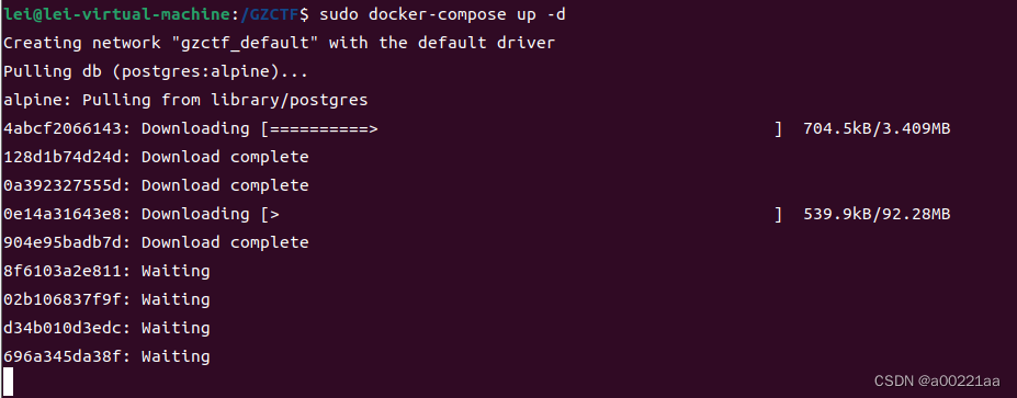 然后直接运行 docker compose up -d 来启动 GZCTF