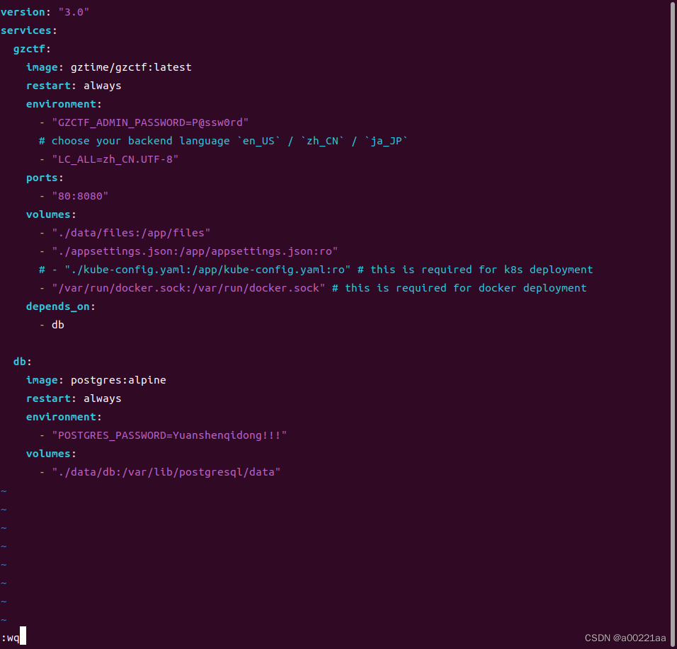 - "GZCTF_ADMIN_PASSWORD=<Your GZCTF_ADMIN_PASSWORD>"