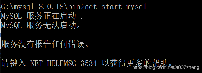 解决办法:上边开头的那个data文件,首先卸载mysql,执行命令mysqld -remove(这样也可以),提示成功卸载,然后找到刚才的data文件,此时里面只有两个文件(至少我是这样的),直接删除整个data文件夹,重新执行mysqld -install 命令,成功安装,执行mysqld --initialize-insecure,等待,会发现自动生成data文件夹,并且里面会出现很多文件,然后执行net start msql,成功!