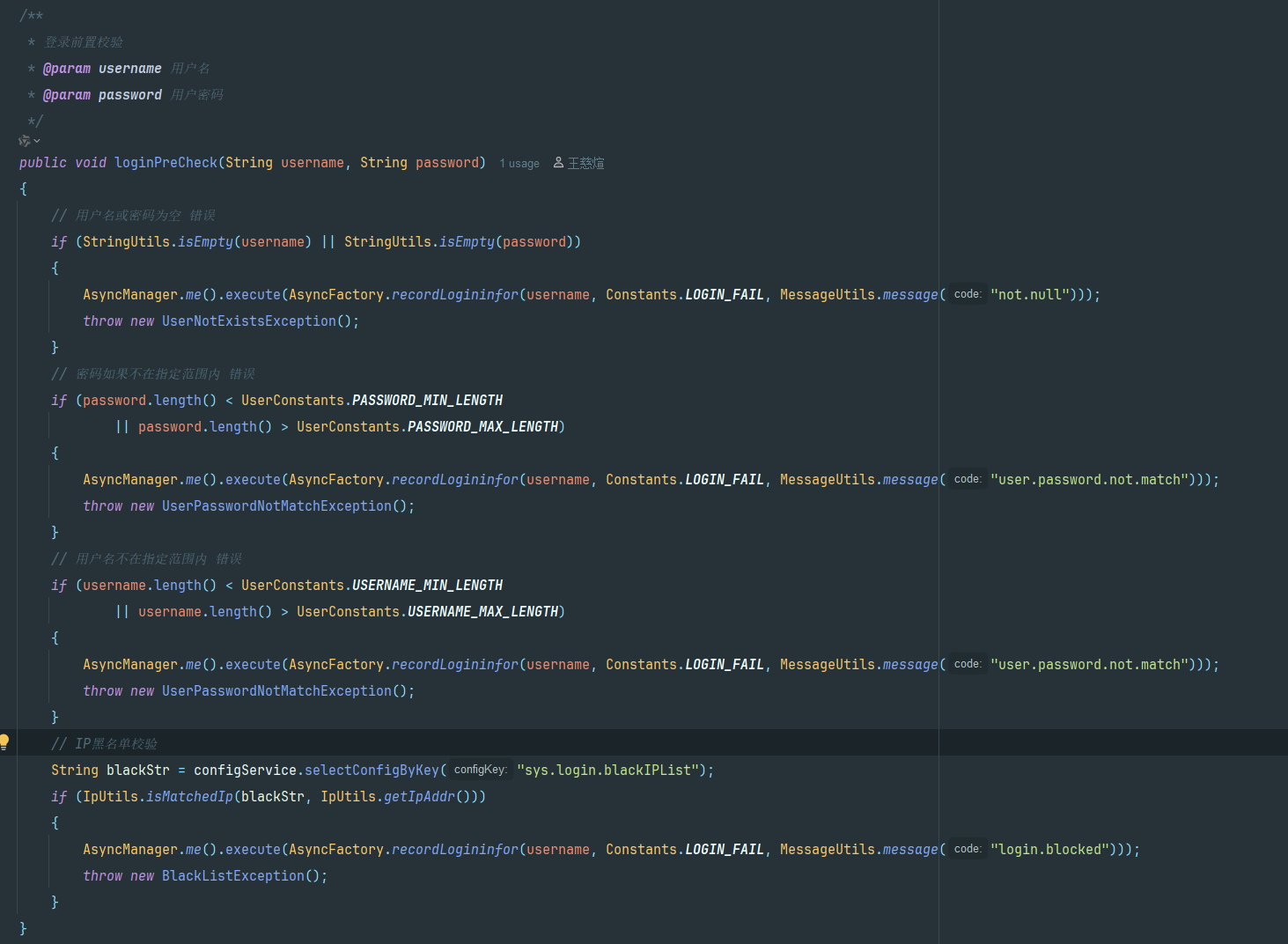 然后是对用户名密码的 前置校验 检验用户名密码是否符合规则