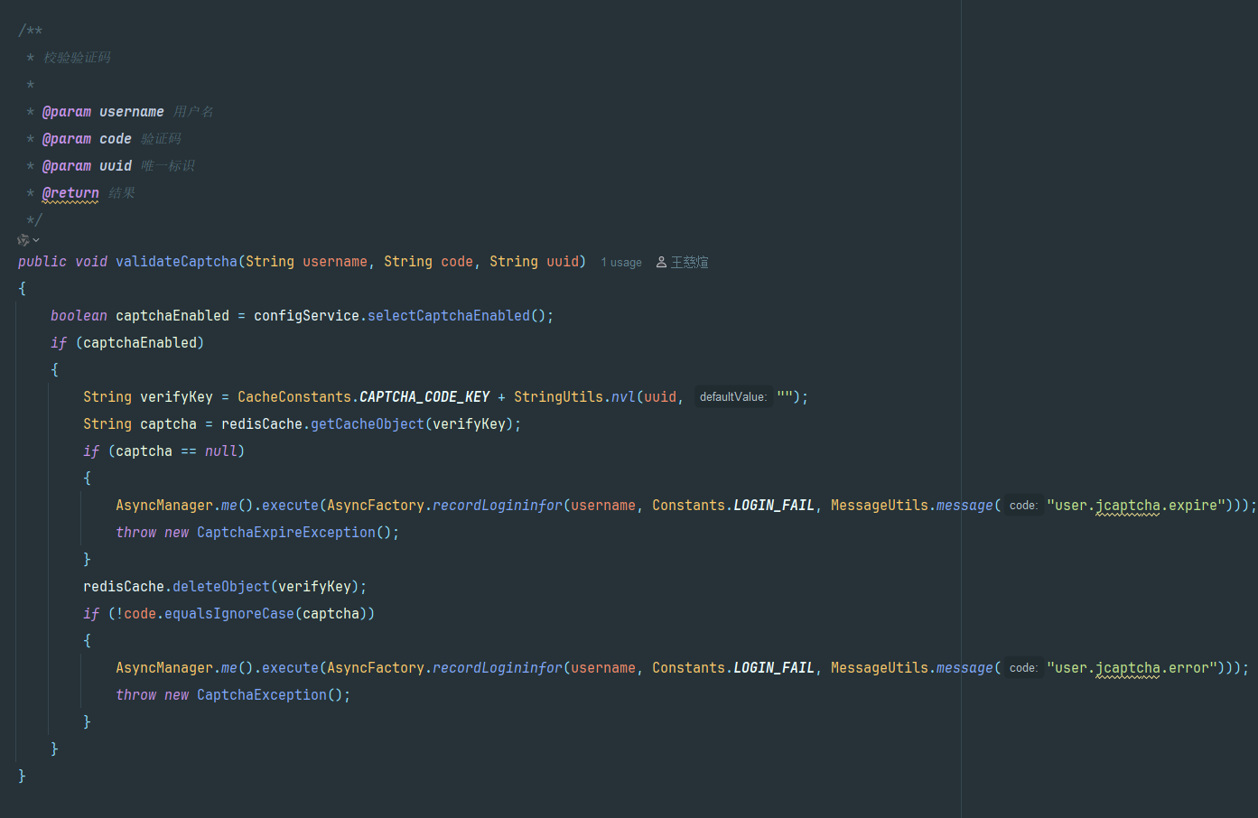 首先对验证码进行校验, 根据传回来的uuid值 进行解析判断值是否正确