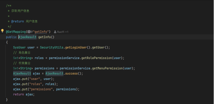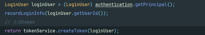 认证成功以后会返回一个loginUser对象