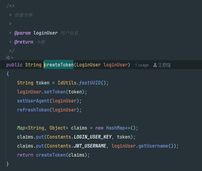 生成该用户的token令牌 token由随机的uuid +用户名组成