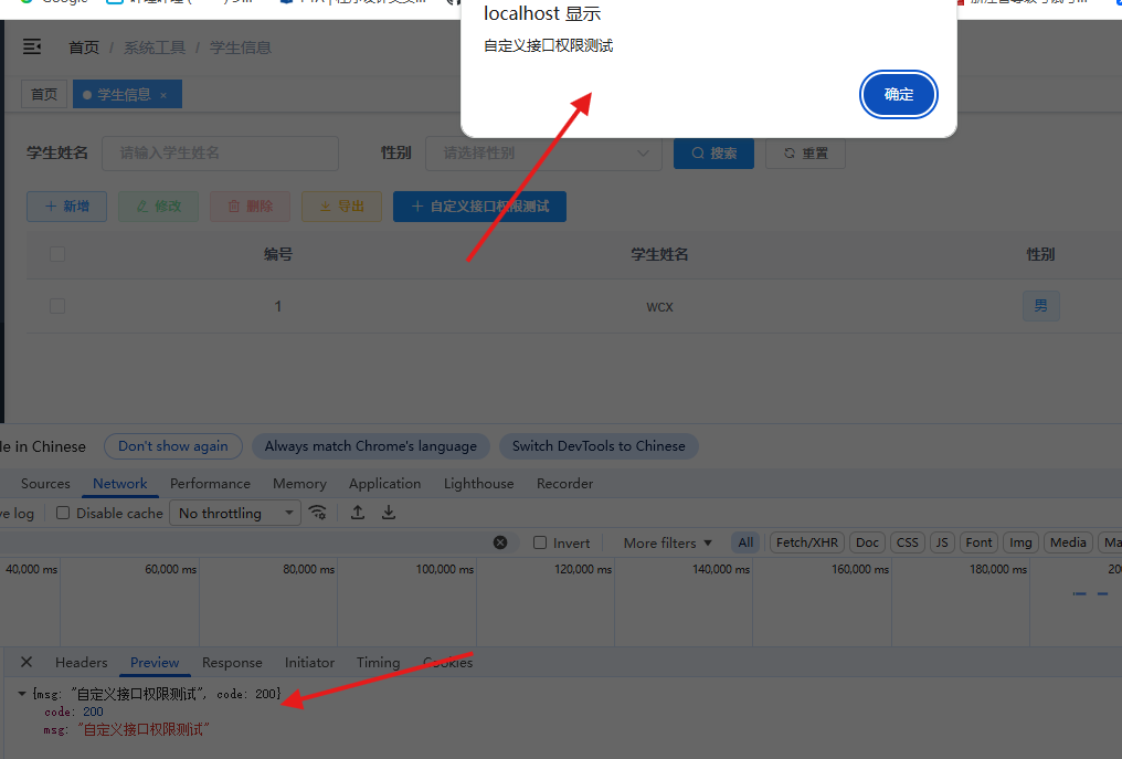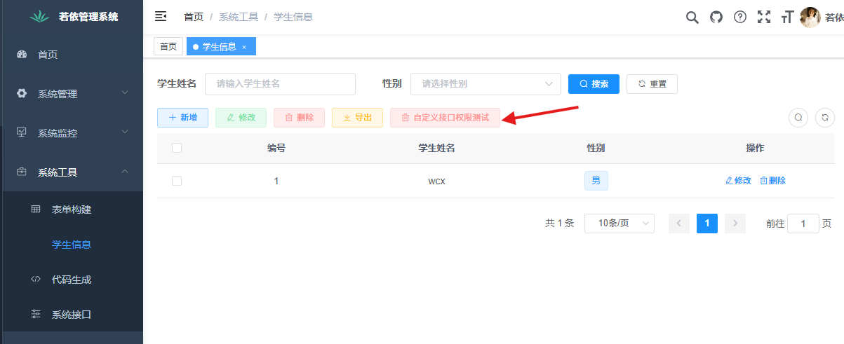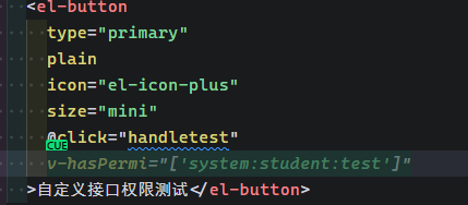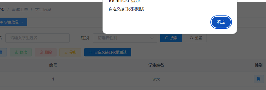 在前端的学生信息页面中,添加一个按钮,根据是否拥有权限student:interface:test 来决定是否显示。