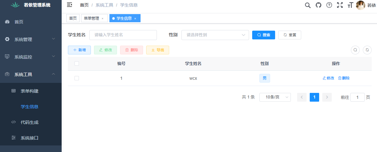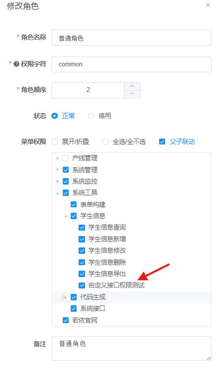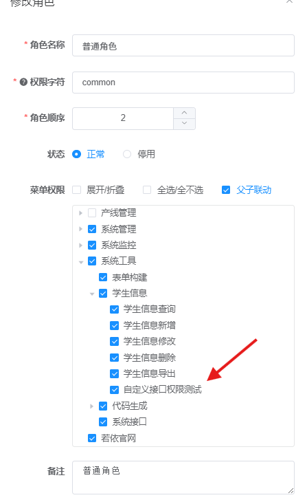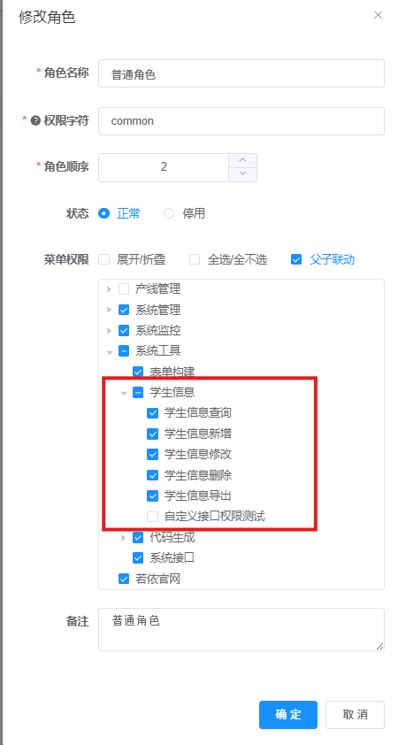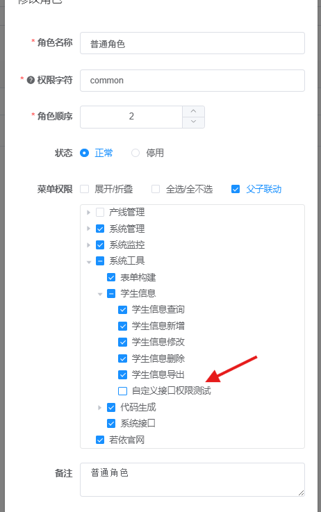 在角色管理中 对普通角色添加学生信息,但是不添加自定义接口.