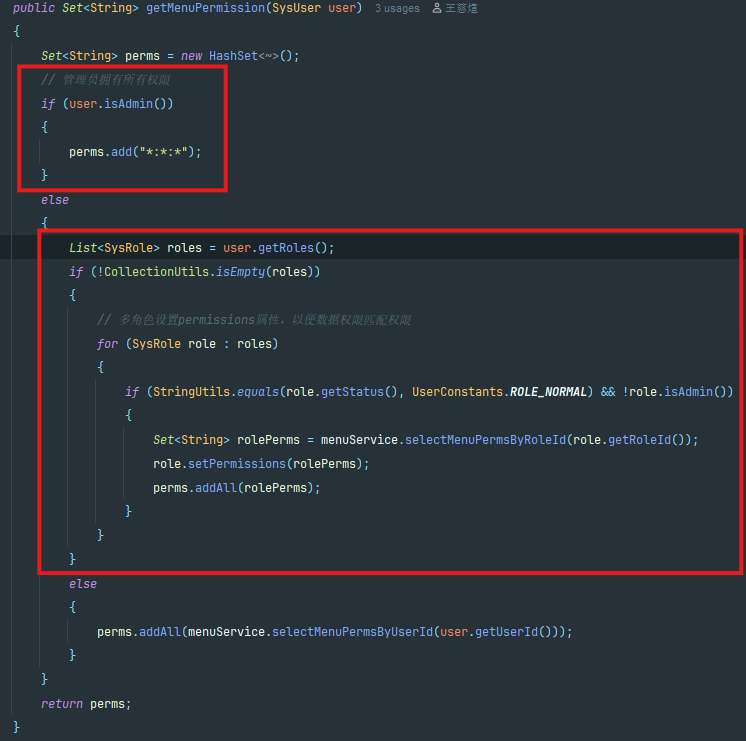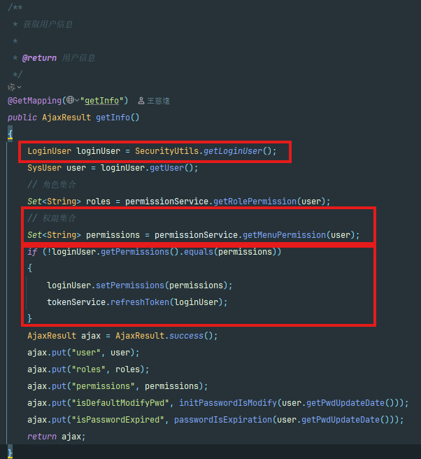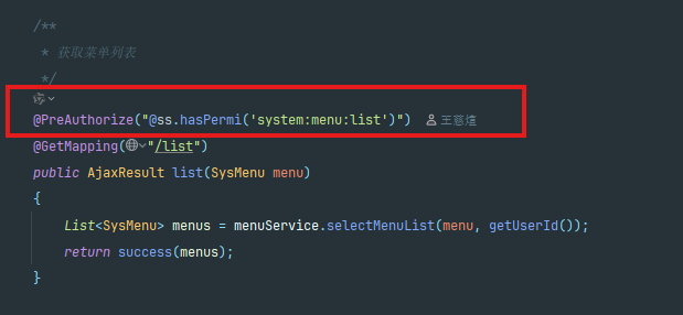 sysloginController里 首先获取到当前登录的用户 然后去获取当前用户拥有的菜单权限,最后去比对数据库菜单权限是否一致。