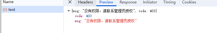 此时我们单击按钮,提示没有权限,证明我们的自定义接口权限是没有问题的。