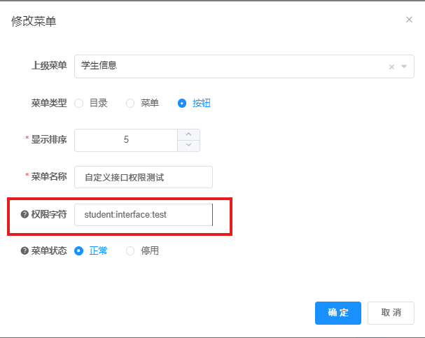 后端的权限标识应该和前端菜单中的权限字符是一致的。