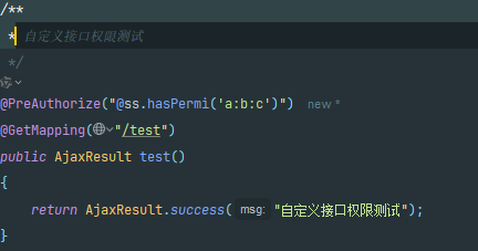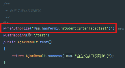 对于自定义接口想要对用户进行权限验证,需要使用@PreAuthorize使用自定义权限标识