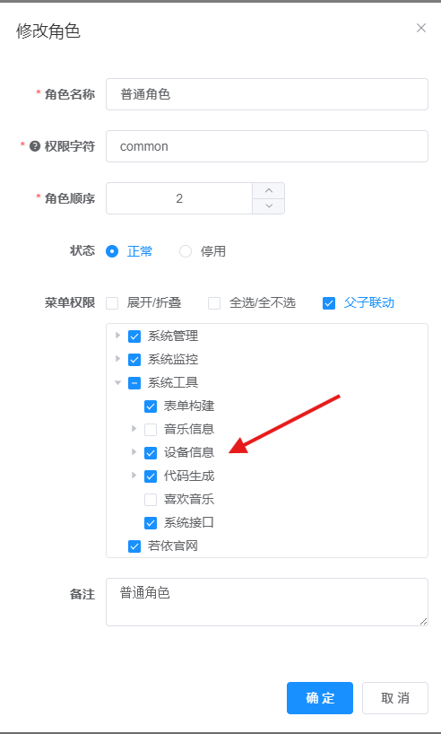 给普通角色修改好菜单权限 这样才能看到设备信息页面