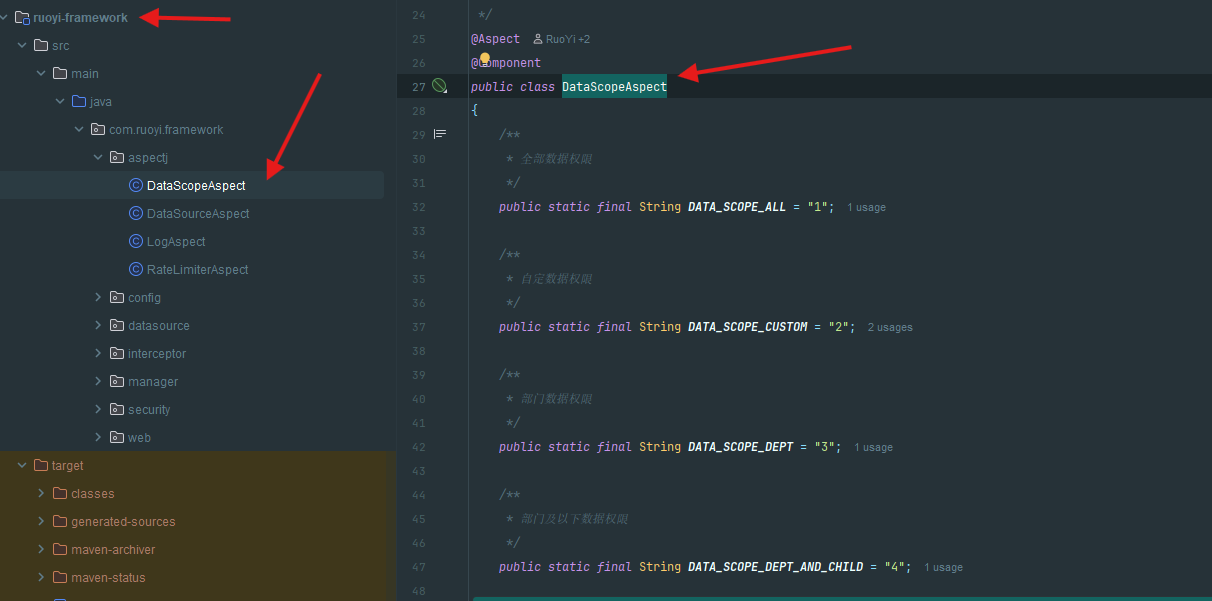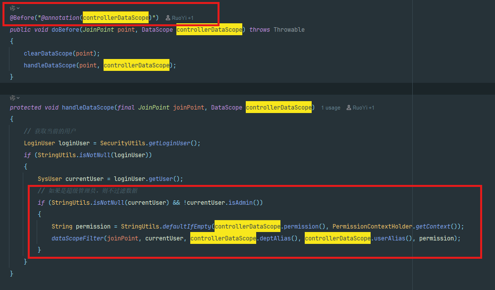 在ruoyi-framework框架下找到了这个datascopeaspect