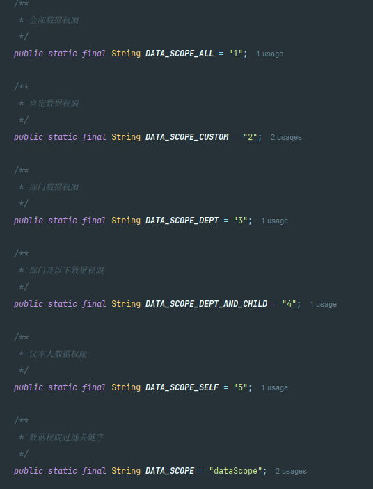 可以看到它的常量定义 跟我们前端看到的对于普通用户设置的数据权限是对应的。