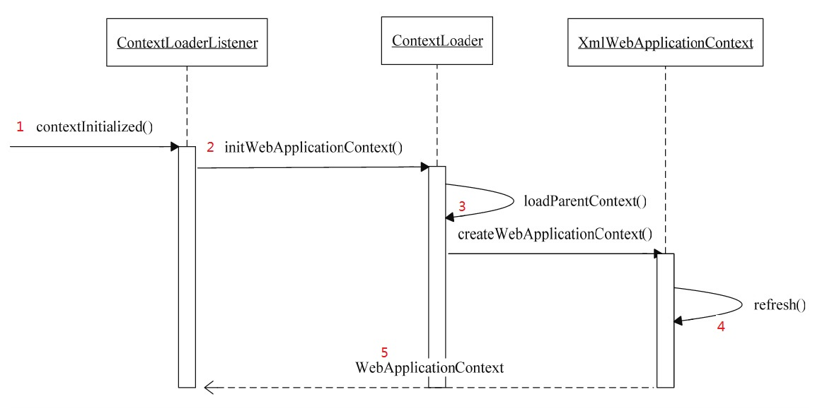 从 contextInitialized 方法的注释可知:通知所有的ServletContextListeners,当前的web应用正在启动,而且这些ServletContextListeners是在Filters和Servlets创建之前接收到通知的。所以在这个时候,web应用还不能接收请求,故可以在这里完成底层处理请求的组件的加载,这样等之后接收请求的Filters和Servlets创建时,则可以使用这些创建好的组件了。spring相关的bean就是这里所说的底层处理请求的组件,如数据库连接池,数据库事务管理器等。