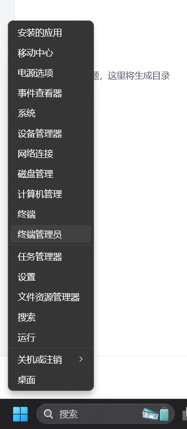 windows标志右键,选择打开终端管理员,windows10的可能不同,打开是蓝色窗口就是对的
