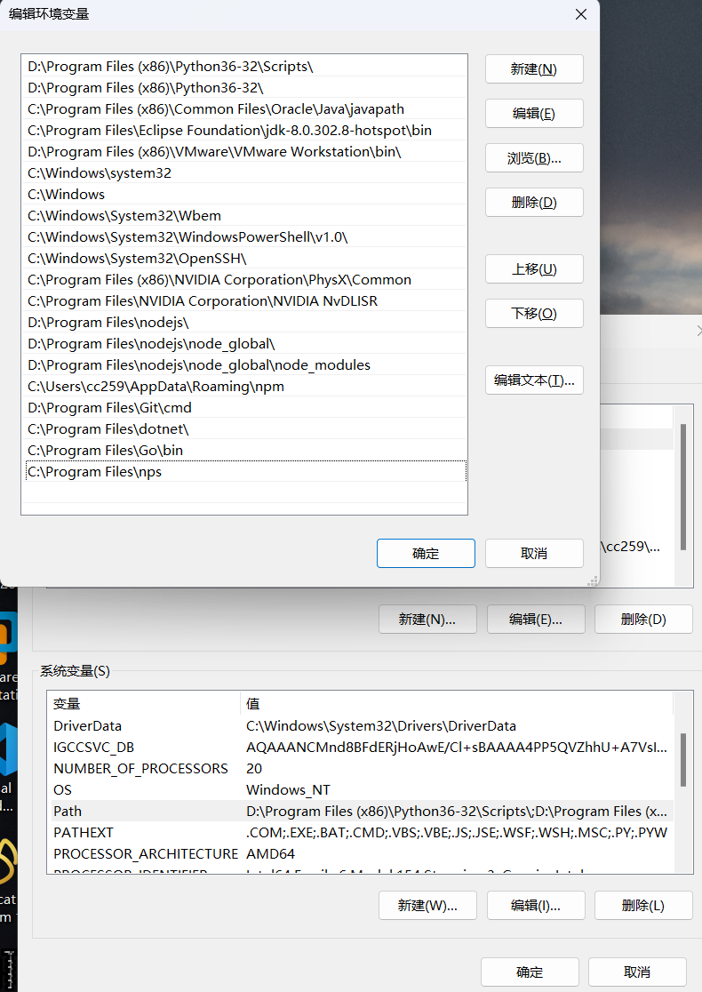 打开环境变量,双击打开下面的Path点新增把nps的路径加进去,点击确定确定即可