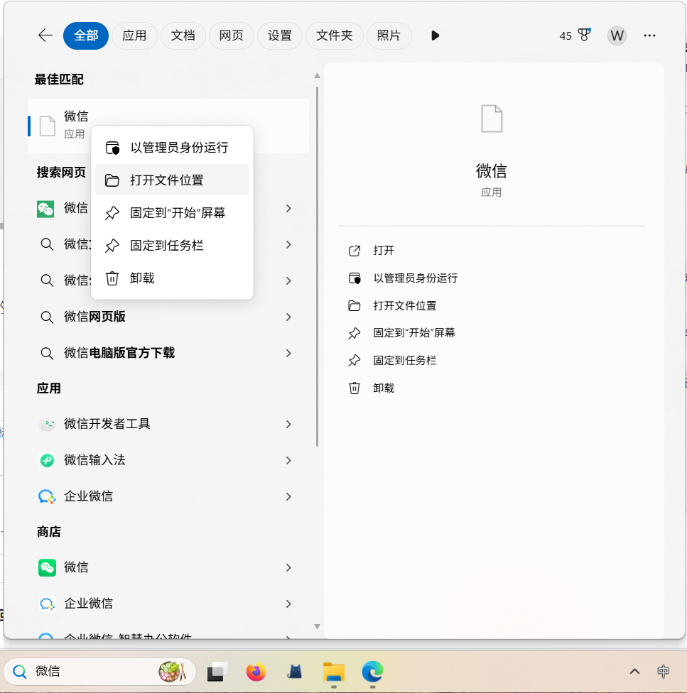 第一步,鼠标右键点击这个变白的微信图标然后点击“打开文件位置”