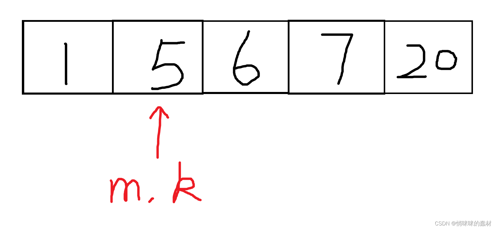 同样是C=3,当A=7的时候,数组中并没有4,按照指针的定义,m,k的逻辑效果是一样的,都会指向第一个比4大的数字,这样,k-m即为0,也就不存在 。因为C不会小于0,所以m,k不会指向A右边的数据。所以,我们可以先将数据快排,再从下标0位置开始枚举A,一直枚举到最后一个元素。指针也在过程进行右移。
