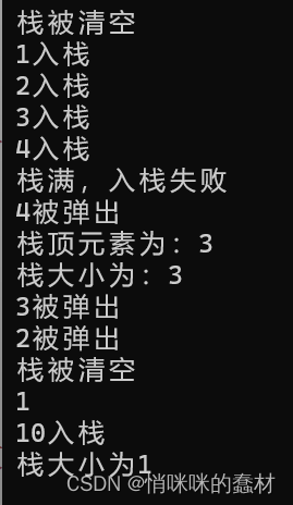 if (StackTop == Size - 1) cout << "栈满,入栈失败" << endl;