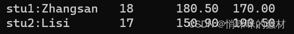 printf("stu2:%s\t%d\t%.2f\t%.2f\n", stu2.name, stu2.age, stu2.weight, stu2.height);