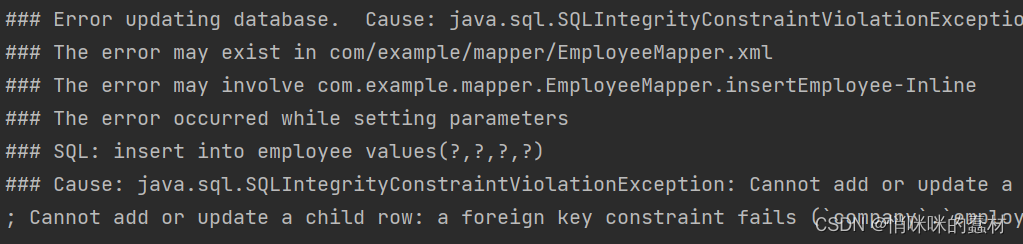 Cannot add or update a child row: a foreign key constraint fails (`company`.`employee`, CONSTRAINT `employee_department_department_id_fk` FOREIGN KEY (`department_id`) REFERENCES `department` (`department_id`))