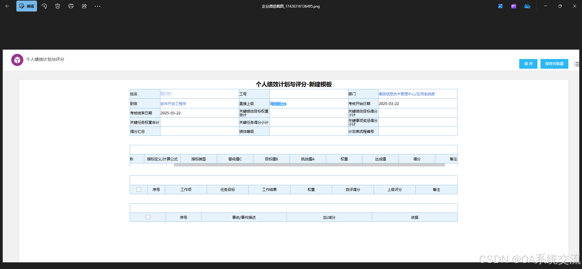 (2)、考核计划目标到期后,OA系统自动触发给员工进行自评以及直属领导进行打分,最终汇总到人事部门。