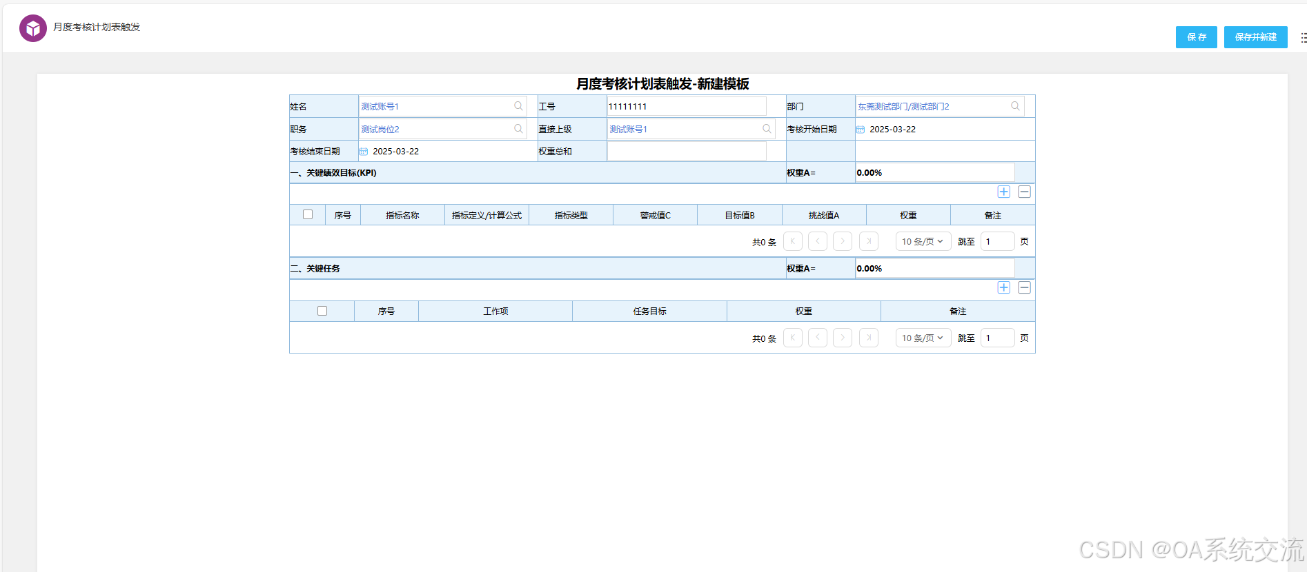 2.本次设计主要针对员工的月度考核进行自动触发进行绩效目标设定,以及后续直属领导等进行评分。