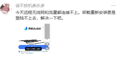 然后是远控稳定性的吐槽,这其实并不是版本更新后才出现的,网易UU远程启动导致网络断线,或者远控软件本身无线网和流量都连接不上的情况一直比较频繁的有网友吐槽,这让人用起来其实非常糟心的。