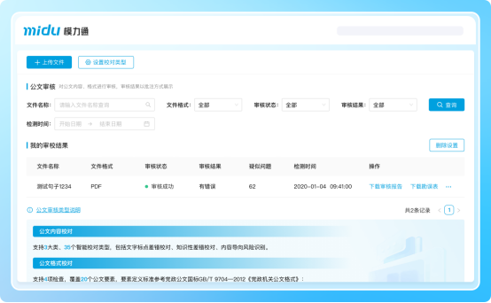 公文格式是刚性要求,一字一号皆有其规。蜜度模力通严格遵循《党政机关公文格式》要求,可在成文时自动完成红头、字号、行距等要素的排版,更提供专业的“AI公文校对”功能,对20个公文要素进行精准核查,从源头杜绝格式错误。