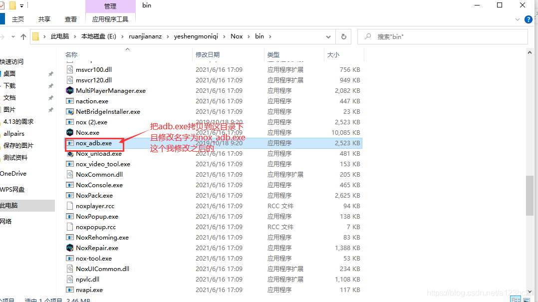 2.2拷贝adb.exe拷贝过来之后,把adb.exe名称修改为nox_adb.exe