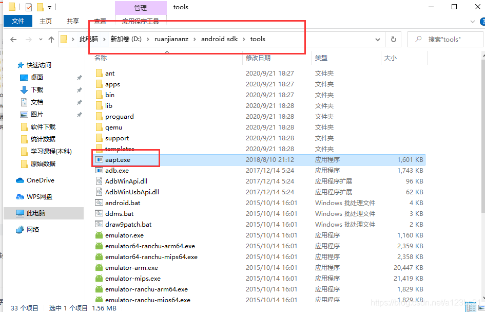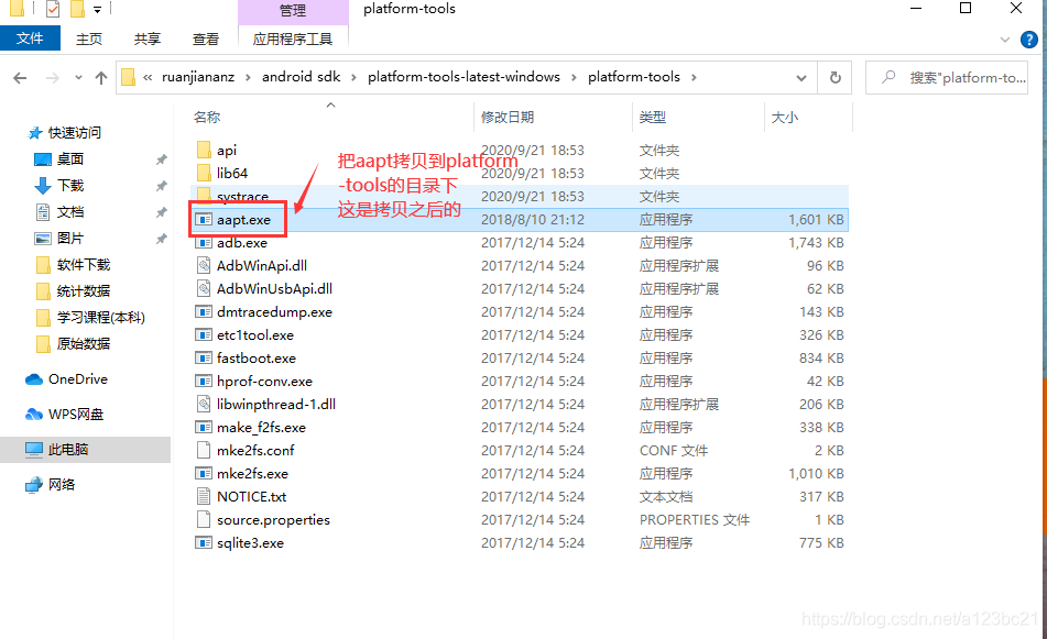 3)下载完成之后把aapt拷贝到platform-tools的目录下,同时也拷贝到tools目录下