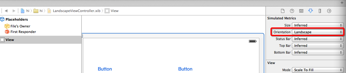 LandscapeViewController : UIViewController并一起创建xib文件,再在ViewController.h中添加两属性