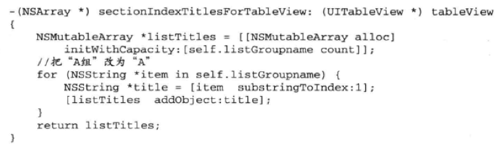 -(NSArray*) sectionIndexTitlesForTableView:(UITableView*)tableView 中返回索引值