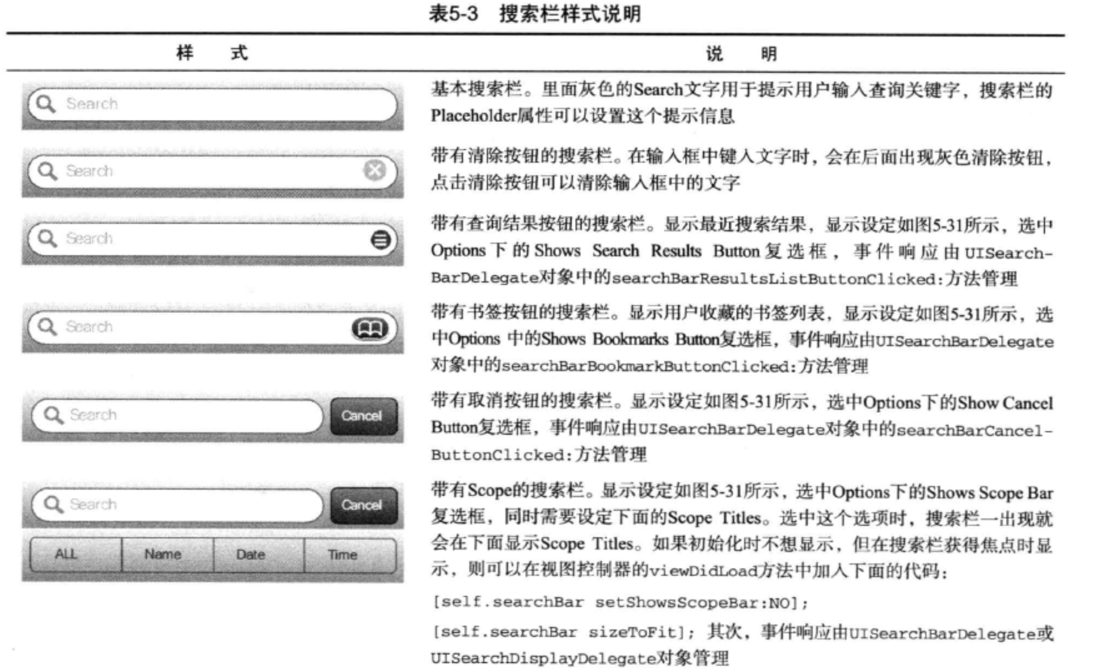 UISearchBarDelegate是搜索栏控件的委托协议,UISearchDisplayController用来管理搜索栏并显示搜索结果视图。事件处理由UISearchDisplayDelegate协议的委托对象来管理