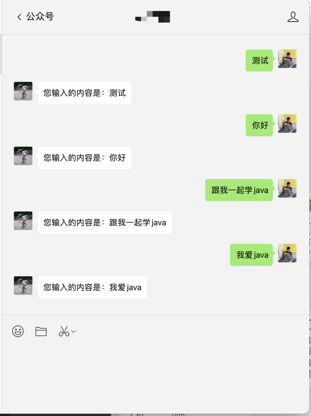 4.4、启动项目给公众号回复消息进行测试。结果: