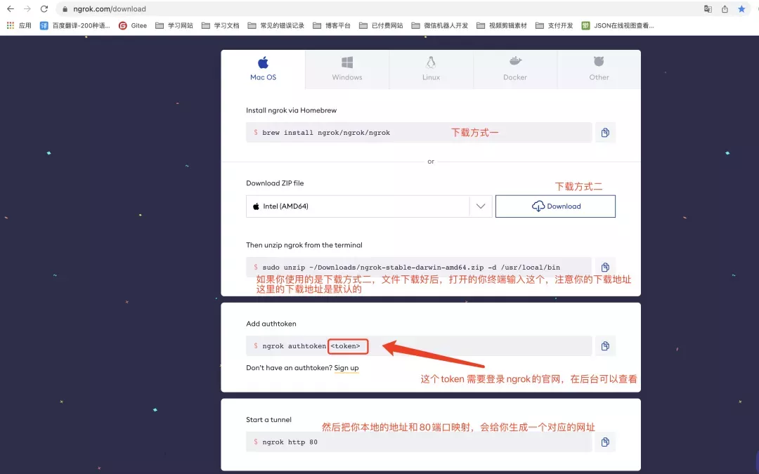 3.1、需要通过内网穿透,把你本地的服务器映射出去,这样外网才能访问到你电脑的项目,我用的是ngrok