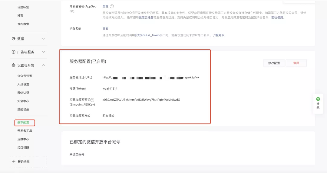 2.5、启动项目,然后去公众号后台配置服务器信息