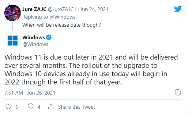 现有 Windows 10 设备的 Windows 11 升级将在 2022 年开始,它将在几个月内交付。