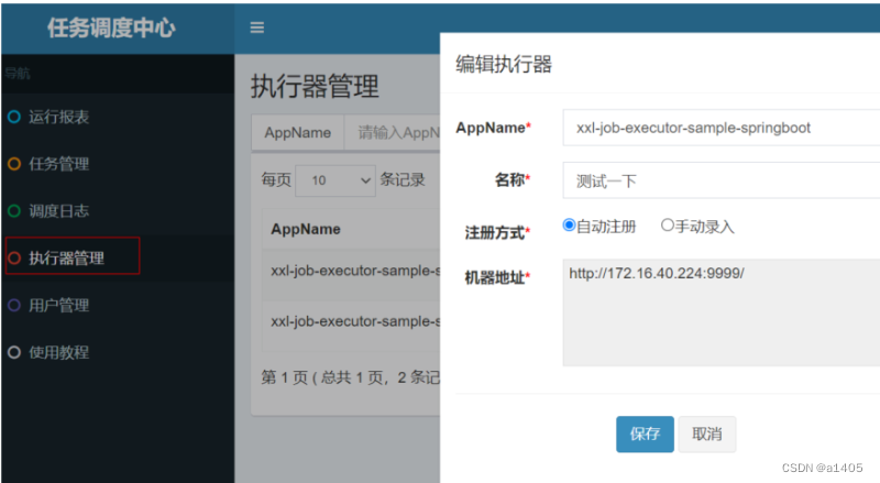 打开调度中心可视化界面,在执行器管理界面,添加新增执行器