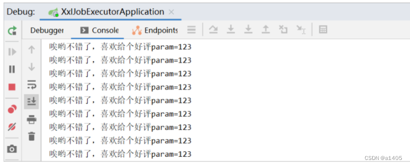 在任务管理中,可以编辑任务,然后选择路由策略,比如:选择轮询,然后启动任务,就会看到两个执行器项目轮着执行定时任务。