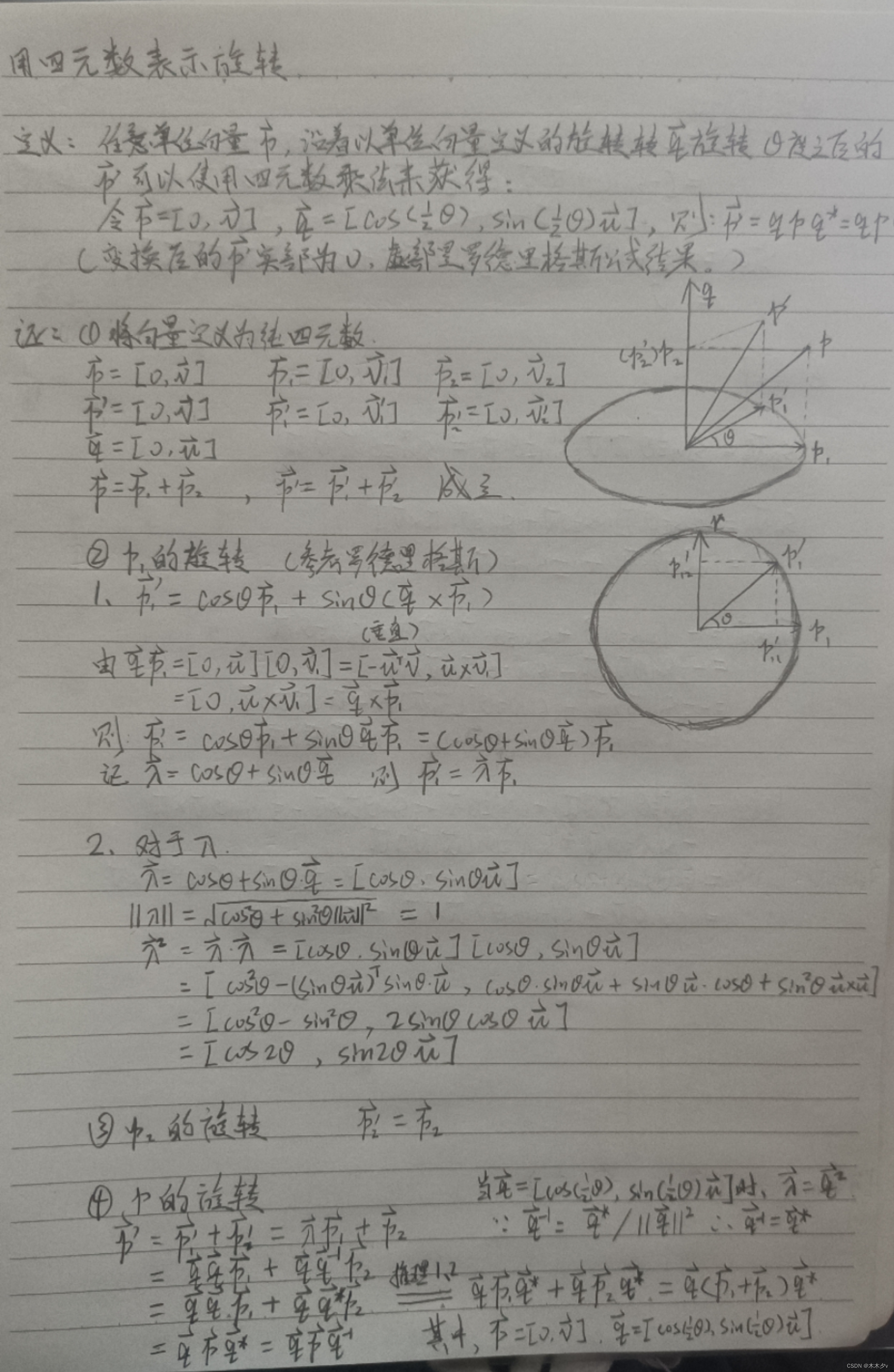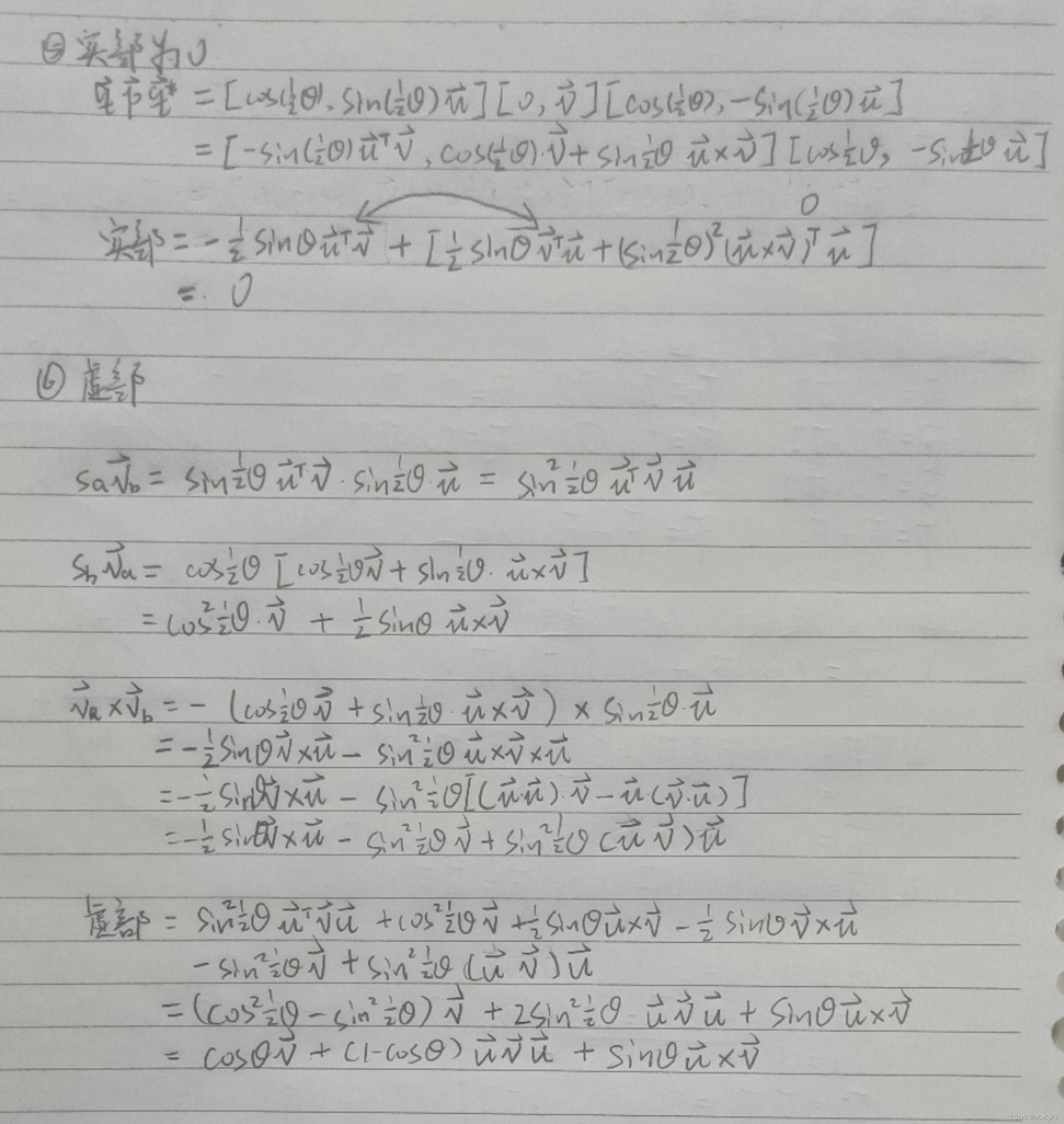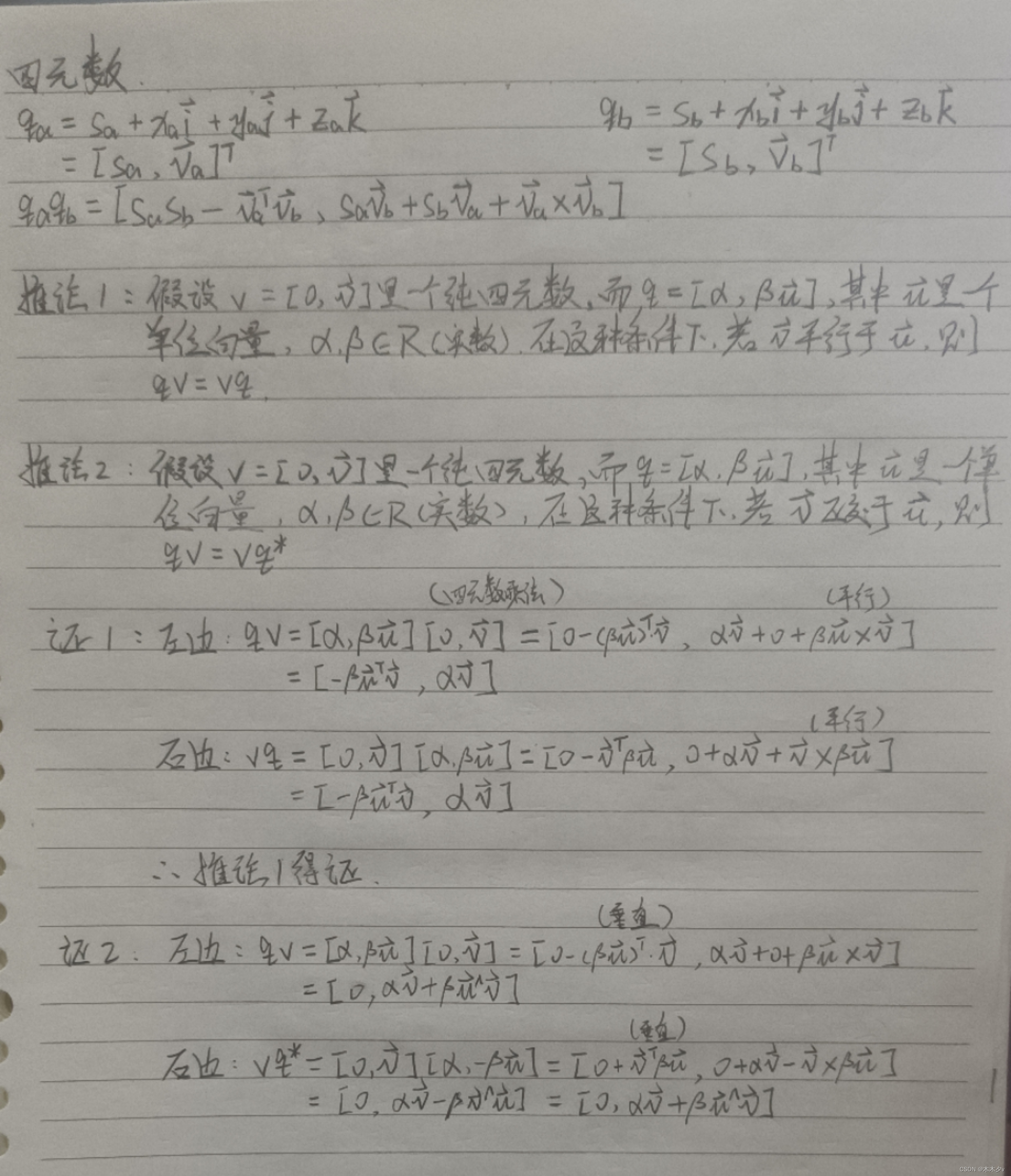 证明需要用到四元数的乘法以及乘法的两个推论,四元数乘法以及推论证明如下: