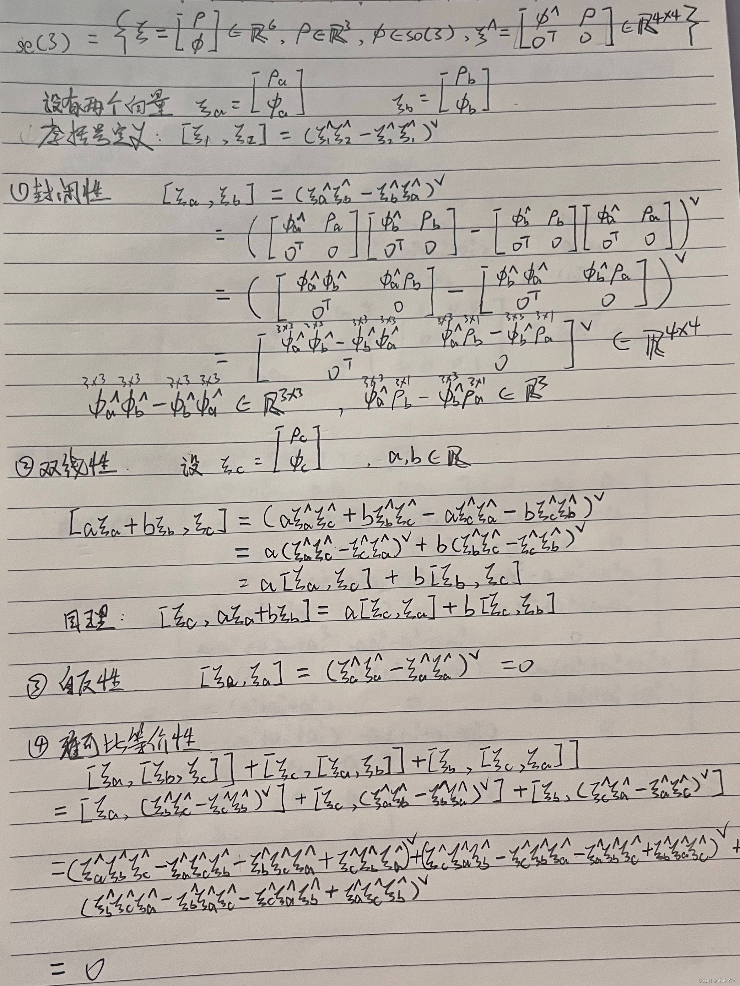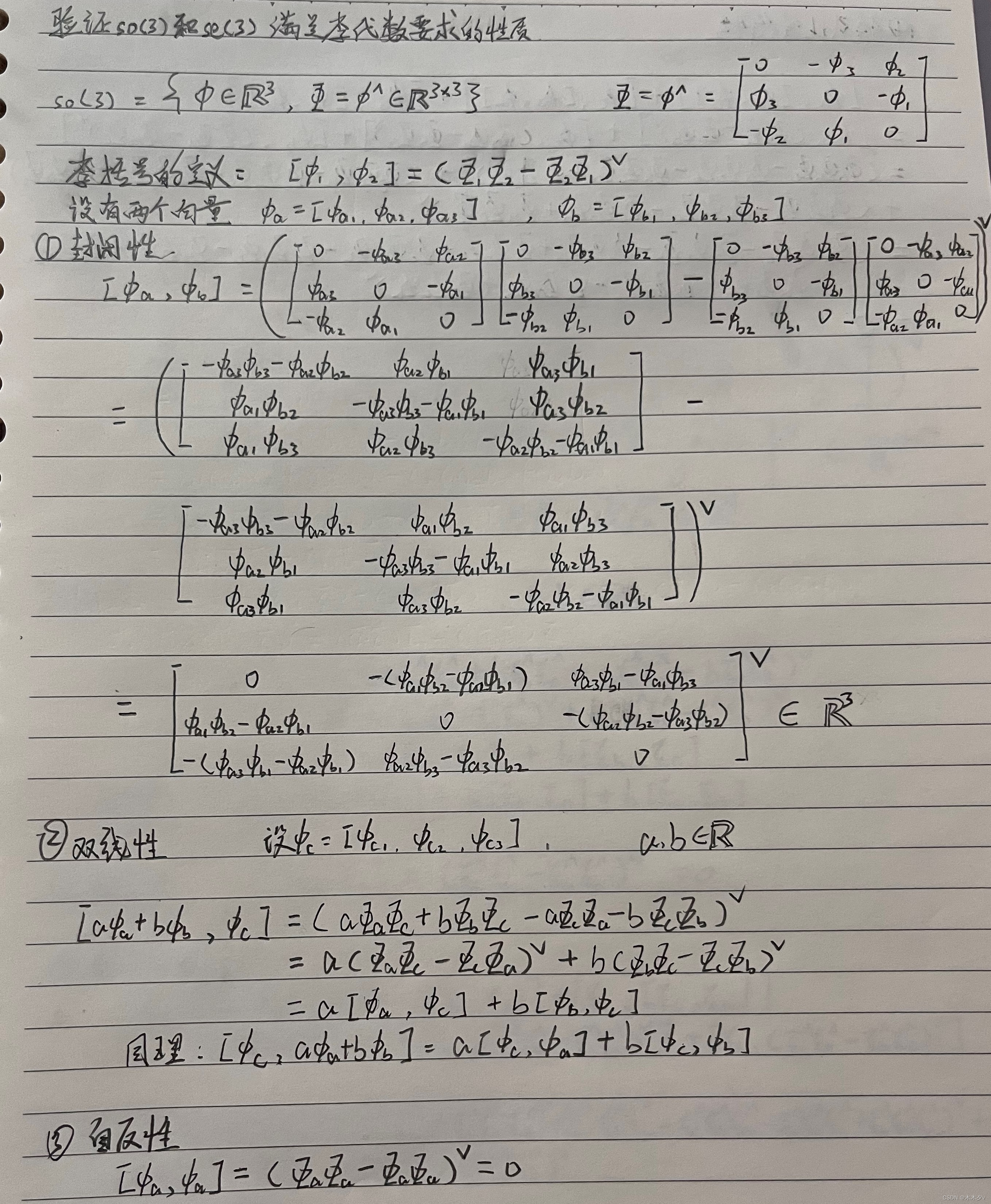3. 验证so(3)和se(3)满足李代数要求的性质。
