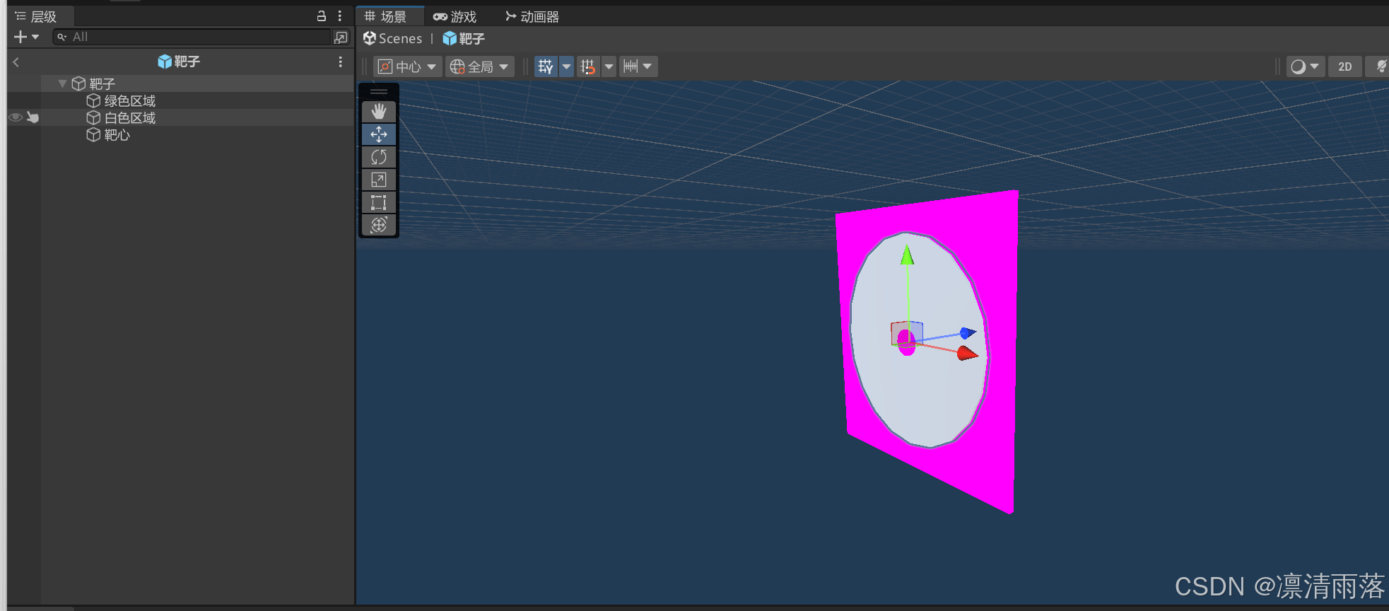 做一个靶子的预制体,白色区域和靶心是得分区域,其中靶心得分更高
